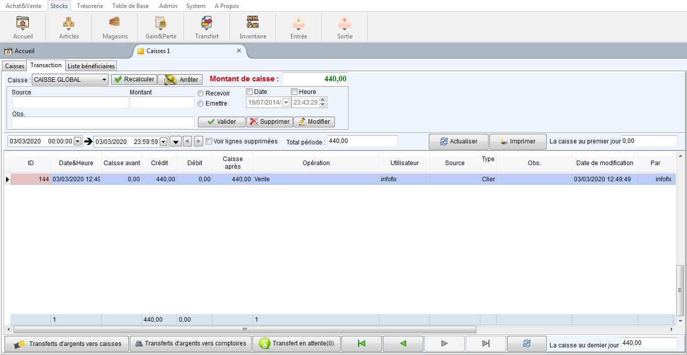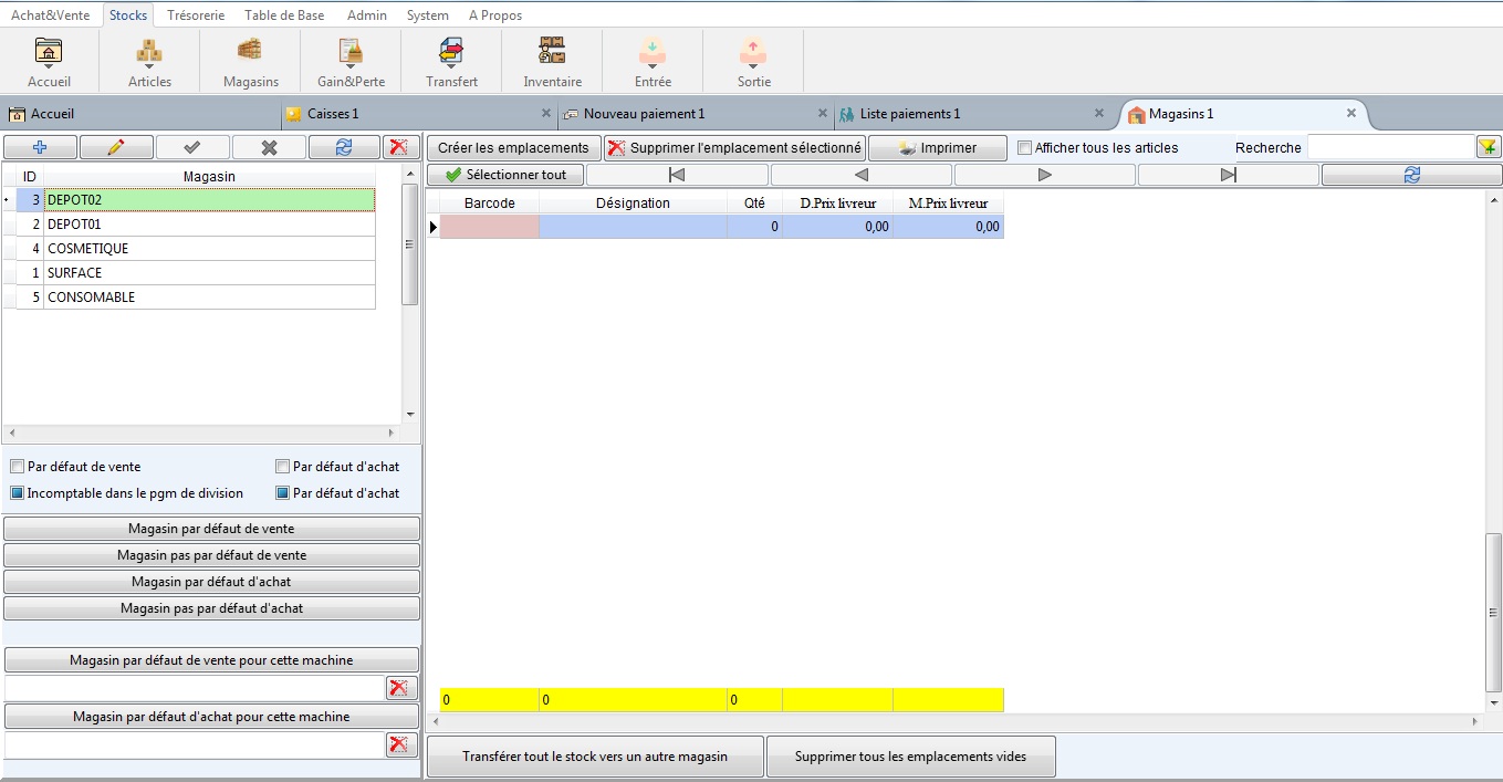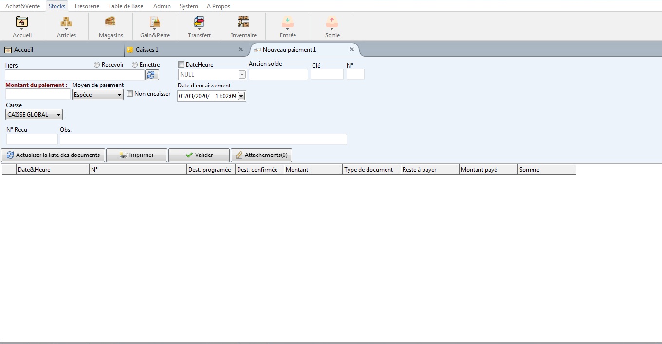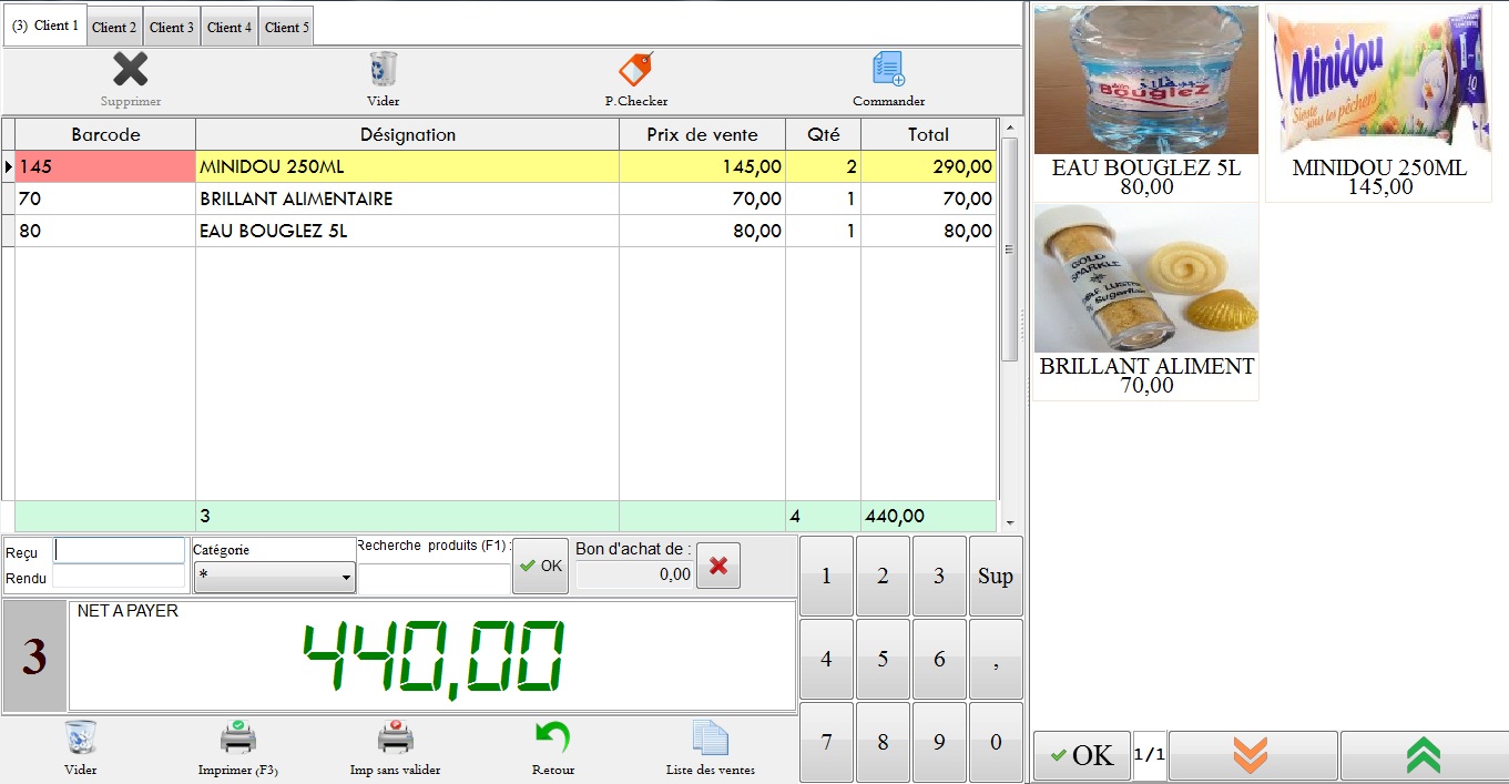 - Gestion des paiements (cash, bon d'achat ou carte de crédit).
